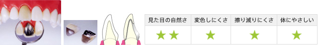保険のプラスチックのかぶせものよりも、より永く白く、美しい歯を保つことができます。